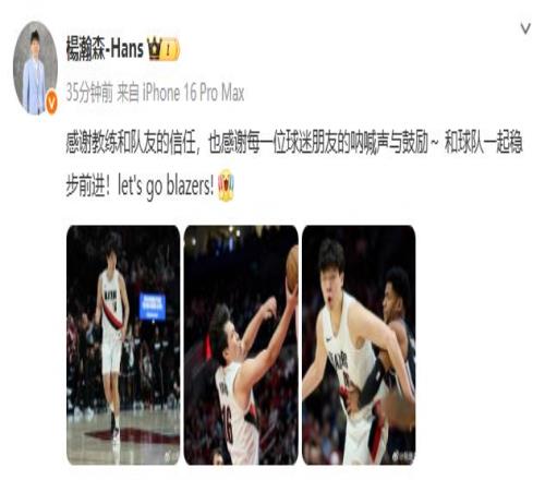 摆正心态,继续加油! Let’s go blazers;感谢教练和队友的信任,也感谢每一位球迷朋友的呐喊声与鼓励~ 和球队一起稳步前进!let's go blazers!