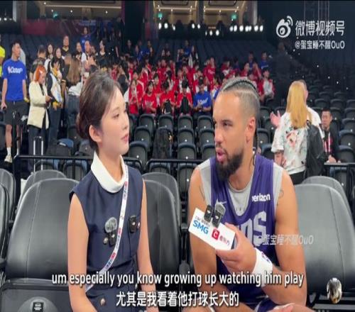 雷速体育10月12日宣 NBA中国赛,太阳球员狄龙·布鲁克斯在场边接受了采访。