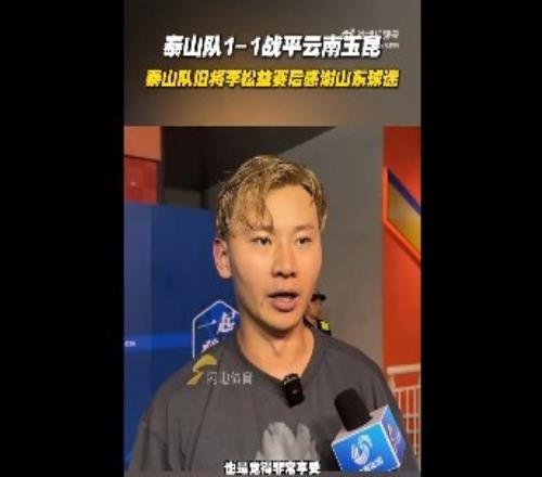 10月4日,中超联赛第26轮的补赛中,云南玉昆与山东泰山以1-1握手言和。赛后,现效力于云南玉昆的老将李松益接受了采访,他对山东泰山的球迷表达了诚挚的谢意。