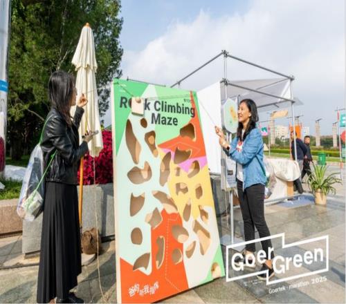 歌尔小镇市集同样延续了低碳环保的设计理念,利用旧材料、木材等材料构建了一个集健康运动、轻食与休闲的一站式沉浸体验空间。在这里,歌尔员工专属休息区体现了企业对员工身心健康的关怀;现场音乐与亲子互动游戏营造了共享的社区氛围。尤为引人注目的是,歌尔整合旗下优质生态资源,将健康与绿色理念落于实处。