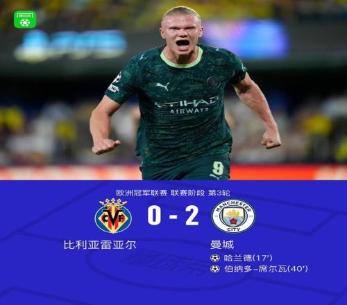 北京时间10月22日3:00,欧冠联赛阶段第3轮,曼城作客陶瓷球场挑战比利亚雷亚尔,本场主裁判为格祖比尤克。上半场,刘易斯助攻哈兰德抢点破门,萨维尼奥助攻B席头槌建功。下半场,尼科伤退,奥卢瓦塞伊中柱。最终,曼城2-0客胜比利亚雷亚尔。