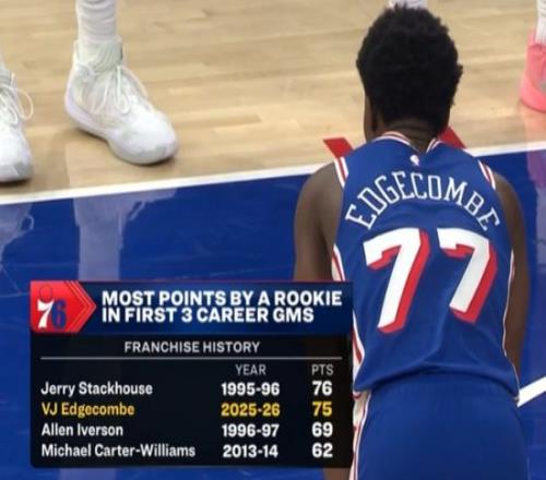 同时,埃奇库姆也打破艾弗森的纪录,成为76人队史前三场比赛得分第二多的球员。