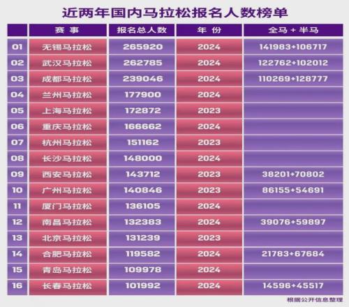 以武汉马拉松和无锡马拉松为例,2025年两地马拉松报名人数都超过40万。