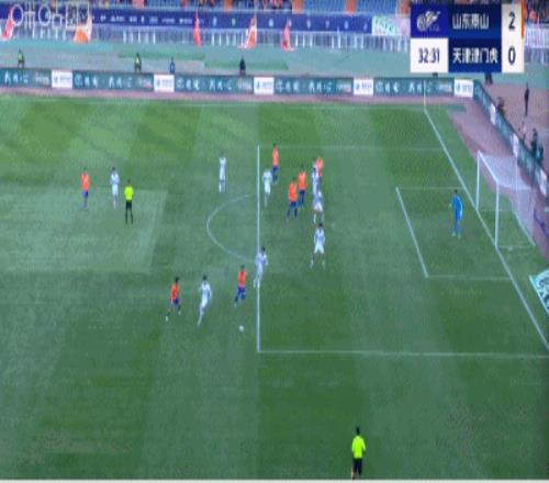 第32分钟,津门虎由守转攻时被断球,泰山就地转移发起进攻,谢文能突破杨梓豪后底线传中,泽卡在无人防守的情况下,轻松头槌破门,2比0。