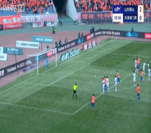 不过,在被罚下一人后,津门虎却马上收获进球。基莱斯在禁区内反复变线后,躲过对手三人包夹,起左脚施射完成破门,将比分改写为1比2。