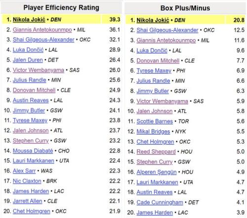 如此炸裂的表现,约基奇反超字母哥、亚历山大,重夺MVP榜第一也就不意外了。