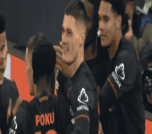 勒沃库森球员兴奋庆祝,另一边,尼科·冈萨雷斯和萨维尼奥已经有些争吵,哈兰德在场面愣在原地。
