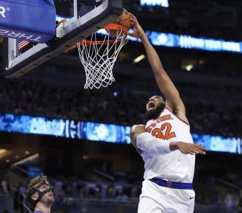 比赛从一开始,节奏便被尼克斯牢牢掌控。他们没有依赖单一的超级巨星,而是通过不断的传导和无休止的跑动,编织出一张令对手窒息的进攻大网。在这张网中,每一位球员都是发起者,也都是终结点。首当其冲的便是球队核心杰伦·布伦森。他如同一位精准的指挥官,不仅用自己犀利的突破和稳定的中投不断取分,更以出色的视野串联起全队的进攻。全场比赛,布伦森状态火热,高效砍下33分,他的每一次得分都像是为尼克斯的进攻浪潮注入新的动力。