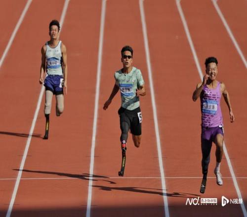 男子100米T63级决赛。