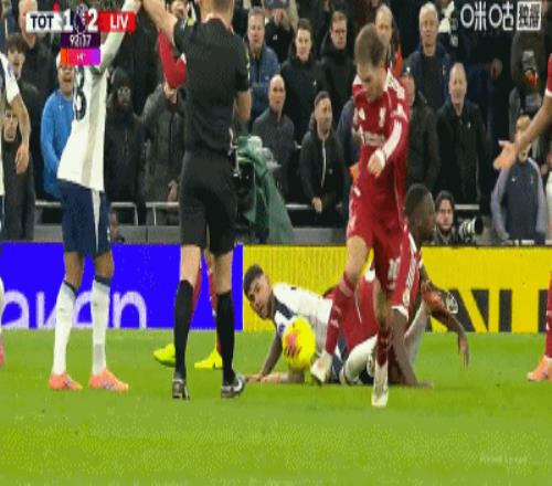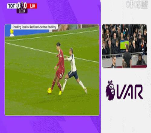 第33分钟,哈维-西蒙斯踩踏范戴克小腿,VAR确认后被红牌罚下,热刺少一人作战!