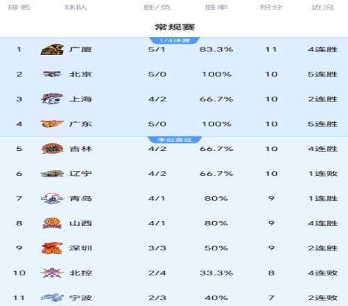 此外,上海队也配得上黑马的角色,进攻端还是很强,现在凭借4胜2负的战绩,反超多队升至积分榜第三位。