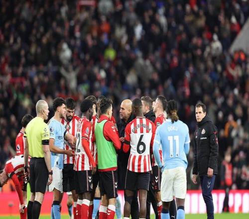 或许是对于丢分失望,赛后多纳鲁马等曼城球星,还与桑德兰球员起了冲突。显然,曼城球员也被桑德兰的主场表现和顽强的防守,给气到破防了。