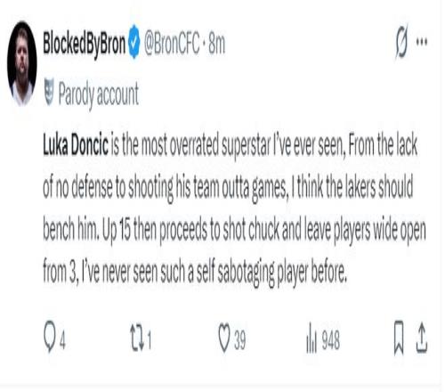 美媒:东契奇是我见过最被高估的超级球星,防守端各种漏防频频失分,湖人领先15分后他登场就丢分,我觉得湖人应该换下他。我从未见过如此自毁前程的球员。