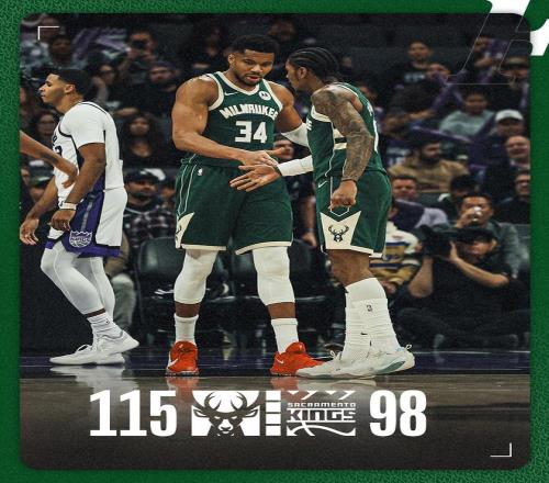 距离终场仅剩2分21秒,密尔沃基锁定大局。萨克拉门托追分乏力,比赛随后失去了悬念。最终,雄鹿以115比98完胜对手,还拒绝了26分逆转。密尔沃基实现了2连胜,同时送给对手5连败。