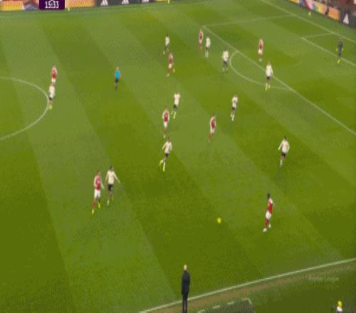 不要纠结萨卡一对一的时候,为什么没有其他队友上前分兵跑位,吸引对手的防守注意力?也不要纠结当萨卡和这一侧肋部形成成规模的进攻的时候,左半扇的队友为什么无法做到类似的事情,只能在开场16分钟后,送出一次传中?