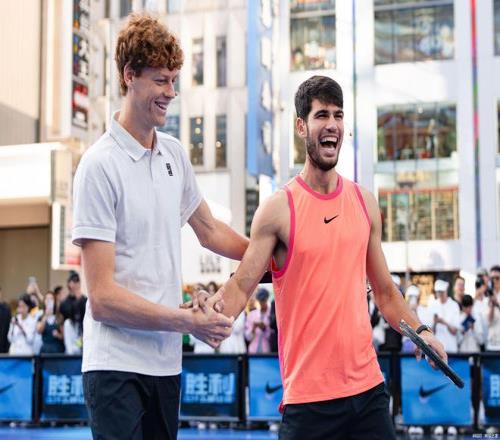 这场表演赛的赛制采用三盘两胜制,虽然是项没有积分的纯表演赛,但是在球迷和网友们看来,阿尔卡拉斯和辛纳一定会跳出表演赛的圈子,像打巡回赛那样展开真刀实枪对决。