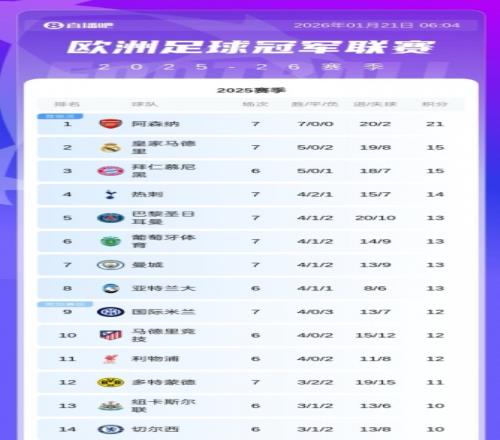 令人瞩目的是,在本赛季参与欧冠的六支英超球队中,热刺的排名仅次于表现出色的阿森纳,阿森纳位居欧冠积分榜首,而曼城、利物浦和切尔西等传统豪门则都排在热刺之后,显示出热刺在欧洲赛场上的顽强竞争力。目前,英超球队的欧冠排名依次是:阿森纳第一,热刺第四,曼城第七,利物浦第十一,纽卡斯尔第十三,以及切尔西第十四。