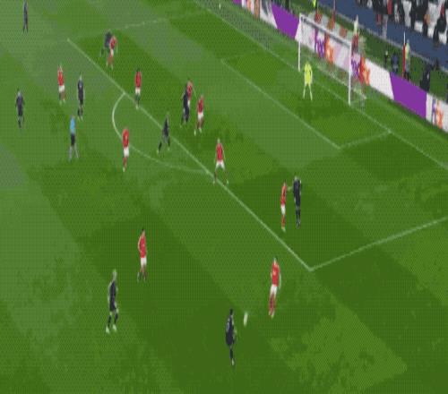 第30分钟,接到阿森西奥的传中,姆巴佩头球破门,先拔头筹。