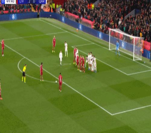 下半场,萨拉赫任意球世界波点燃全场。
