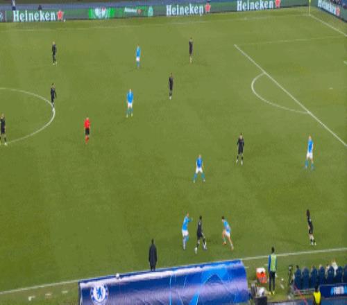 如果一定要分出高下,切尔西要稍好一点点,这体现在他们在将那不勒斯阵型抻开,包括通过争夺二点球来打转换的时候,还是可以在右半扇打出想要的配合: