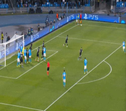 但在这次任意球的主罚过程中,那不勒斯送上了手球犯规,于是任意球直接变成了点球: