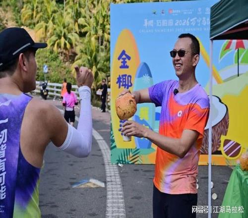 赛前我留意到一件有趣的事,第一赛道强哥在视频号中承诺,他将在比赛时,在35K的金椰子补给点,为选手服务。