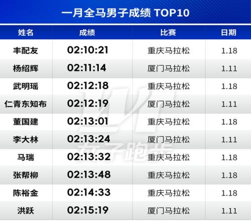 过往每年的1月,白金标厦马成为年度大型赛事的独苗。如今,随着金标赛事重马的提档,让今年1月,出现了厦马和重马的背靠背之战。而这个月,全马男女TOP10的成绩也皆出自重庆和厦门。