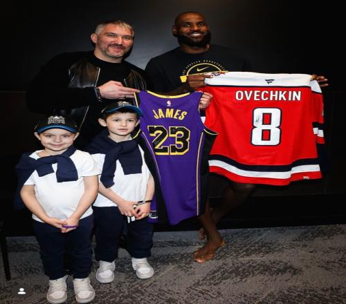 在湖人大胜奇才的比赛中,跟奇才都在华盛顿但属于不同联盟的球队、NHL华盛顿首都人队发布了个动态,就是他们的当家球星亚历克斯·奥维契金赛后跟NBA门面詹姆斯合影并互换球衣、以及签名的视频。