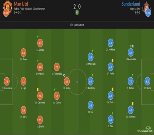 英超:曼联20桑德兰!芒特首球谢什科连场破门,阿莫林暂保帅位