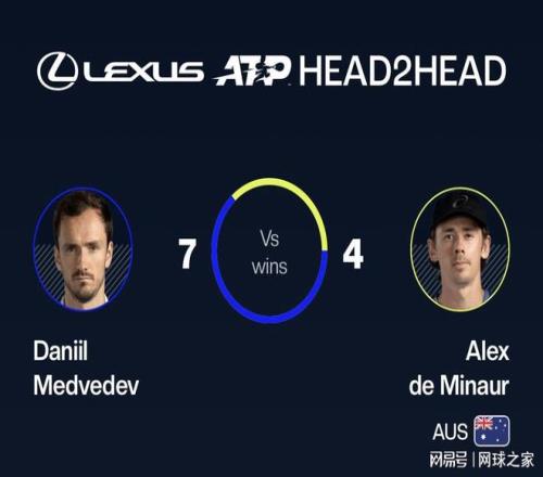梅德韦杰夫四分之一决赛的对手是7号种子德米纳尔,双方历史交手纪录为梅德韦杰夫7胜4负占据上风。最近一次交锋发生在2025年蒙特卡洛大师赛,当时德米纳尔6-2 6-2取胜。