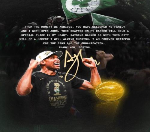 北京时间9月29日,据此前报道,自由球员霍福德已与金州勇士队签下一份多年合同。霍福德更新个人社媒告别波士顿,原文如下:“谢谢你,波士顿。从我来到这里的第一天起,你们就用张开的