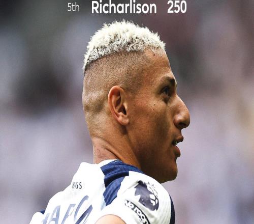 雷速体育10月4日宣 英超第7轮,热刺在客场以2-1的比分战胜利兹联。本场比赛,热刺前锋里沙利松在英超中达到了一个重要的里程碑——他成为了第五位在英超联赛中出场达到250次的