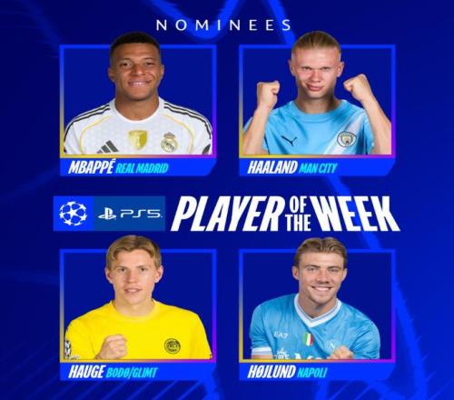 欧冠本周最佳球员候选:姆巴佩、哈兰德、霍伊伦、海于格