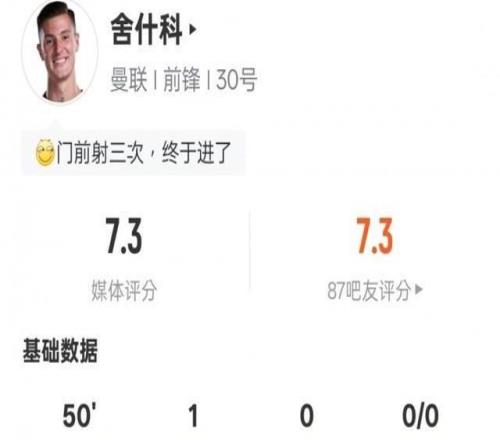 直播吧9月15日宣 曼联本轮0-3不敌同城对手曼城,ESPN记者Mark Ogden以“阿莫林及其体系让舍什科失望”为题评价舍什科的表现。文章认为,舍什科对阵曼城没有捞到一次得分机会,这