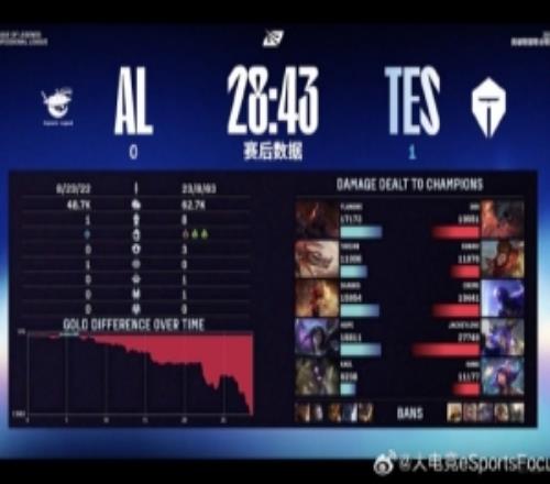 体育资讯9月20日称 LPL季后赛TES 1-0 AL,解说管泽元赛后点评: 小奶油开车带辅助配合69卖那一波以后这把直接结束了 滔搏速通一把 怎么说 今天几