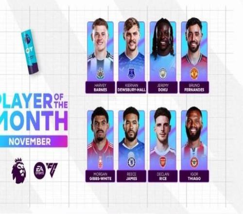 北京时间12月4日,英超官方公布了11月最佳球员的候选名单,其中多库、B费、里斯-詹姆斯、赖斯等多人在列。英超11月最佳球员候选:哈维-巴恩斯(纽卡) 4场2胜2负 打进3球迪尤斯伯里