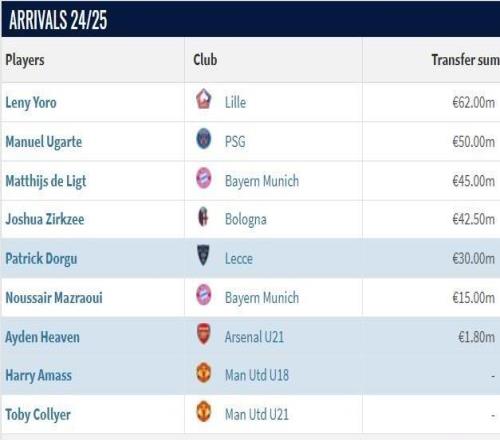 阿莫林时期曼联引援:花费2.825亿欧元签七人,谢什科7650万欧最高