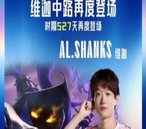 体育资讯9月20日称 2025年9月20日,Shanks选手选出维迦中路,此为中路维迦时隔527天再度登场,上一次在中路位置被选用,是在2024LPL春季赛BLG vs TES
