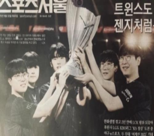 重量级冠军!GEN全员举起冠军奖杯图登上“首尔体育封面”