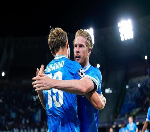 雷速体育10月2日宣 欧冠联赛阶段第2轮,那不勒斯主场暂时2-1领先葡萄牙体育。今夏从曼联租借加盟的霍伊伦上演梅开二度,而为其送上两个助攻的则是今夏结束十年曼城生涯的德布