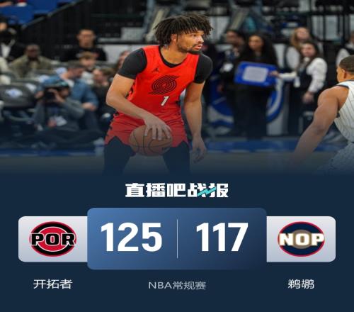 开拓者战胜鹈鹕杨瀚森连续缺席比赛夏普砍下35分5助攻阿夫迪亚贡献32分_nba直播