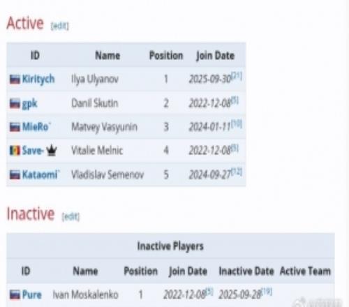 下放Pure!BB官宣前VP一号位Kiritych加入曾替补获得梦联S26亚军
