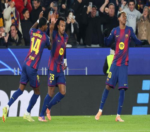 巴萨21逆转!孔德头球双响创造欧冠历史亚马尔+拉什福德送助攻