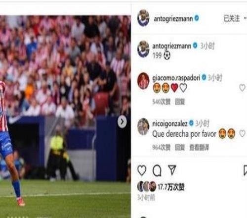北京时间9月28日,西甲联赛第7轮,马德里竞技在主场5-2战胜皇马。本场比赛第83分钟,格列兹曼替补登场,并在下半场补时阶段打入一球。赛后,格列兹曼更新了社交媒体动态。本场比赛第8