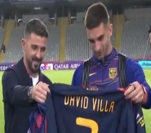 北京时间10月2日,在欧冠对阵巴黎圣日耳曼的激烈较量后,巴萨球员费兰-托雷斯迎来了场外的一个特别瞬间,他收到了一个意义非凡的礼物,那就是西班牙传奇射手比利亚亲手送给他的西班