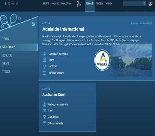 德约科维奇的2026赛季蓝图已经绘就首笔。其官网最新更新的赛程显示,塞尔维亚天王的新年征程将始于南半球的阳光与热浪下——1月12日开战的阿德莱德250国际赛,紧接着便将奔赴墨