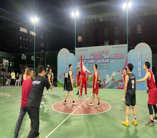 “大湾区体育故事分享会·青春当燃逐冠军”暨“青春杯”篮球邀请赛。魏彤/摄南方财经记者魏彤 广州报道11月22日傍晚,中山大学南校区松涛园旁室外篮球场,由十五运会和残特奥会